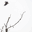A majestic eagle soars high above a bare tree, contrasting against an almost white sky. The branches of the tree reach upward, creating a stark and minimalist scene.